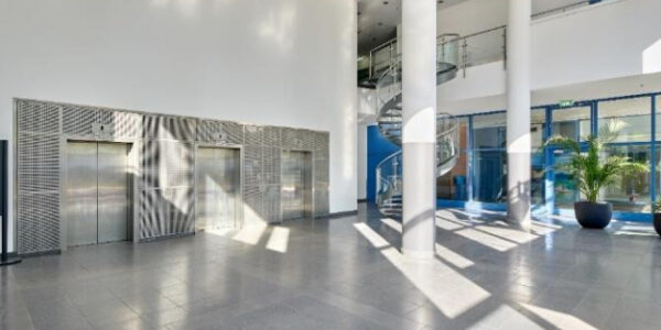 Das im Jahr 1994 errichtete Bürogebäude wurde 2020 umfassend modernisiert und überzeugt mit zeitgemäßer Ausstattung sowie einem ansprechenden Erscheinungsbild. Die großzügigen Fensterfronten sorgen für lichtdurchflutete und angenehme Arbeitsbereiche, die sich flexibel auf die Bedürfnisse verschiedener Unternehmen anpassen lassen. Der einladende und repräsentative Eingangsbereich rundet das professionelle Gesamtbild ab. Die Büroflächen verteilen sich über acht Etagen und bieten vielfältige Nutzungsmöglichkeiten – vom Einzelbüro bis hin zu offenen Raumkonzepten.