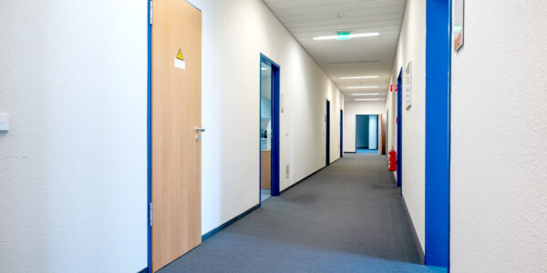Die Büroflächen sind in einer typischen Einzelzellenstruktur angeordnet. Sie verfügen über einen außenliegenden Sonnenschutz, einen Glasfaseranschluss und eine Beleuchtung, die in den abgehängten Decken integriert ist.Ausstattung:
