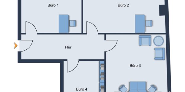 Die angebotene Einheit umfasst 4 geschlossene Büroräume sowie einen großzügigen Eingangs- und Flurbereich.