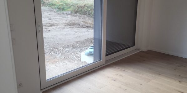 Vom Wohnbereich blicken und kommen Sie auch direkt auf die Süd-West-Terrasse, welche noch durch einen eigenen Gartenanteil (Sondernutzungsrecht) ergänzt wird.