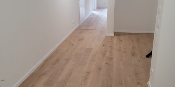 Ein hochwertiger Parkettboden sorgt in allen Wohnräumen für ein natürliches Ambiente, während die individuell regelbare Fußbodenheizung in jedem Raum eine angenehme Wärme garantiert.