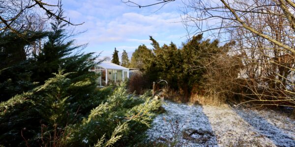 Das 1.499 m2 große Grundstück hat einen unregelmäßigen Zuschnitt. Man könnte es auch teilen und mit zwei Einfamilienhäusern bebauen.
