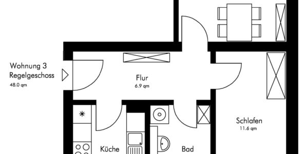 Die Wohnung befindet sich in ruhiger Lage in einem sanierten Mehrfamilienhaus.