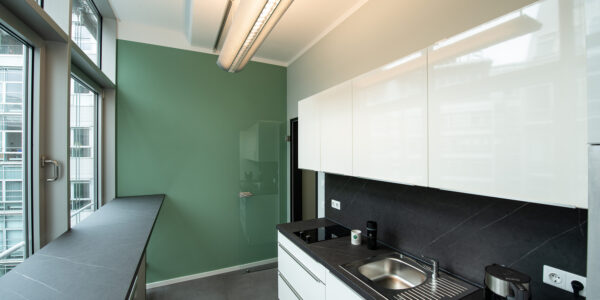 – Moderne Teeküchen und Personenaufzüge in allen Etagen