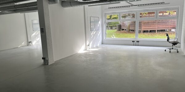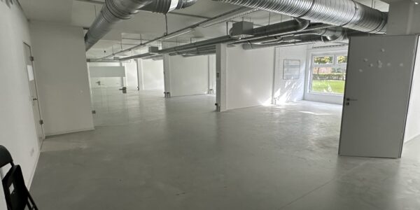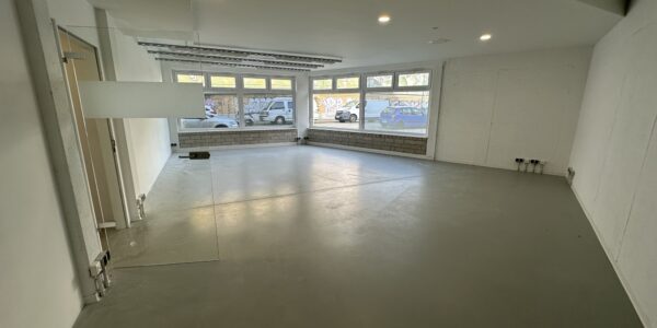 Die Gewerbeeinheit vereint modernen Komfort mit authentischem Industriecharme. Großzügige, helle Räume mit großen Fenstern schaffen eine offene Arbeitsatmosphäre und bieten gute Sichtbarkeit. Nebenräume sowie ein Sanitärbereich mit zusätzlichen Duschen ergänzen die Fläche. Das gepflegte Gebäude verfügt über eine solide technische Ausstattung und eignet sich flexibel für unterschiedliche Gewerbenutzungen.
