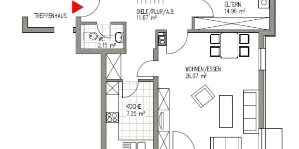 Der interessante Grundriss beinhaltet eine separate Küche, ein Tageslichtbad mit Wanne/Dusche, ein GästeWC, helle Wohnräume und einen geräumigen Balkon mit ruhiger und grüner Aussicht.
