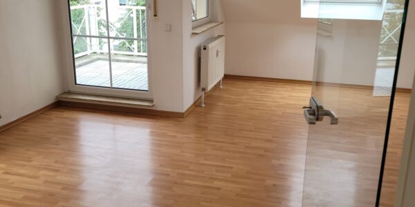 Interessante und helle Dachgeschoßwohnung in absolut ruhiger Traumlage unweit des Cospudener Sees mit Terrasse und Stellplatz.