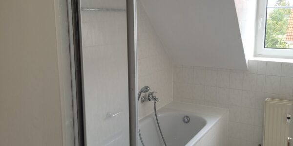 Sonnige 3-Raumwohnung im 2.Obergeschoß mit Dachgeschoßfeeling.Der schöne Grundriss beinhaltet eine kleine separate Küche, ein Tageslichtbad mit Wanne/Dusche, ein GästeWC, helle Wohnräume und einen großzügigen Balkon mit ruhiger und grüner Aussicht.