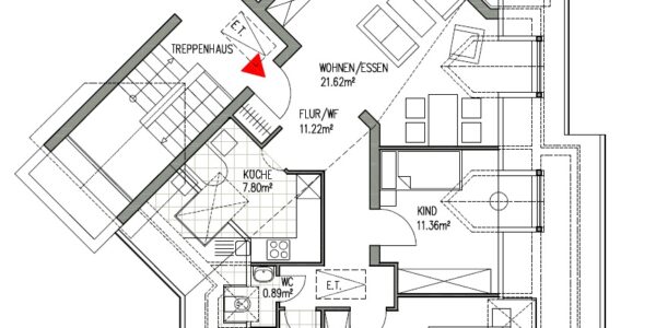 Sonnige 3-Raumwohnung im 2.Obergeschoß mit Dachgeschoßfeeling.