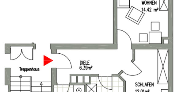 Ruhige Singlewohnung mit günstiger Raumaufteilung, Tageslichtbad, Dusche und Balkon.
