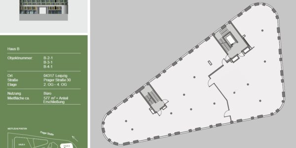 Das Ostforum in der Prager Straße 30 bietet eine herausragende Lage, die durch ihre exzellente Verkehrsanbindung und die Vielfalt an nahegelegenen Annehmlichkeiten besticht.Nur eine Gehminute entfernt befindet sich eine Straßenbahnhaltestelle, die eine schnelle und unkomplizierte Verbindung zu allen wichtigen Punkten der Stadt bietet. Zusätzlich sorgen zahlreiche Buslinien für eine optimale Erreichbarkeit, sodass Sie flexibel zwischen verschiedenen Verkehrsmitteln wechseln können. Der Hauptbahnhof und der S-Bahnhof sind nur ca. 8 Minuten mit dem Auto entfernt, was Ihnen eine schnelle Anbindung an den regionalen und überregionalen Zugverkehr ermöglicht. Der Flughafen Halle/Leipzig ist ebenfalls in nur ca. 20 Minuten mit dem Auto zu erreichen und bietet ideale Bedingungen für Geschäftsreisende.