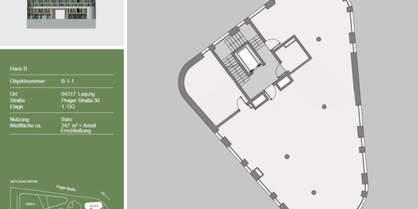 Das Ostforum in der Prager Straße 30 bietet eine herausragende Lage, die durch ihre exzellente Verkehrsanbindung und die Vielfalt an nahegelegenen Annehmlichkeiten besticht.Nur eine Gehminute entfernt befindet sich eine Straßenbahnhaltestelle, die eine schnelle und unkomplizierte Verbindung zu allen wichtigen Punkten der Stadt bietet. Zusätzlich sorgen zahlreiche Buslinien für eine optimale Erreichbarkeit, sodass Sie flexibel zwischen verschiedenen Verkehrsmitteln wechseln können. Der Hauptbahnhof und der S-Bahnhof sind nur ca. 8 Minuten mit dem Auto entfernt, was Ihnen eine schnelle Anbindung an den regionalen und überregionalen Zugverkehr ermöglicht. Der Flughafen Halle/Leipzig ist ebenfalls in nur ca. 20 Minuten mit dem Auto zu erreichen und bietet ideale Bedingungen für Geschäftsreisende.