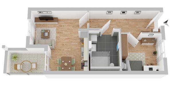 In den Wohnräumen ist ein moderner Designboden in Holzoptik verlegt. Alle Räume verfügen über Fußbodenheizung, elektrische Rollläden runden das Angebot ab.