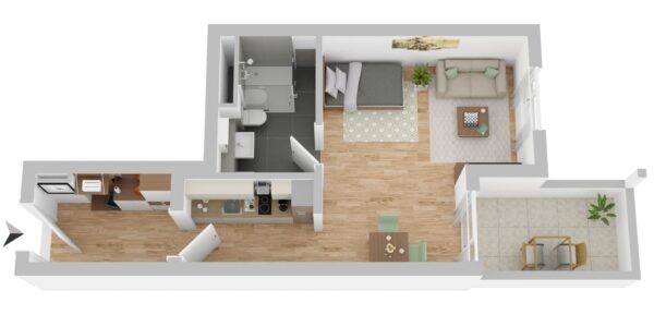 Die moderne & altersgerechte 1-Zimmer-Wohnung befindet sich im 3.Obergeschoss des Neubaus und ist bequem über den geräumigen Lift zu erreichen. Die helle Wohnung verfügt über eine Loggia, eine Küche sowie ein geräumiges Duschbad und Waschmaschinenanschluss. In den Wohnräumen ist ein moderner Designboden in Holzoptik verlegt. Alle Räume verfügen über Fußbodenheizung, elektrische Rollläden runden das Angebot ab. Ein Kellerabteil sowie Fahrradräume sind ebenfalls vorhanden. Ein Tiefgaragenstellplatz kann auf Wunsch angemietet werden.Lage
