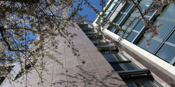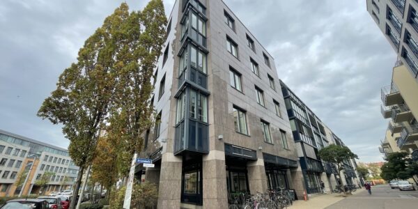 Moderner Geschäftsstandort im historisch gewachsenem Graphischen Viertel zwischen Wohnarchitektur und anderen Büro- und Geschäftsgebäuden.
