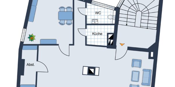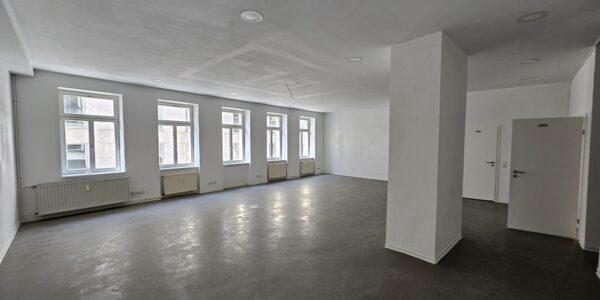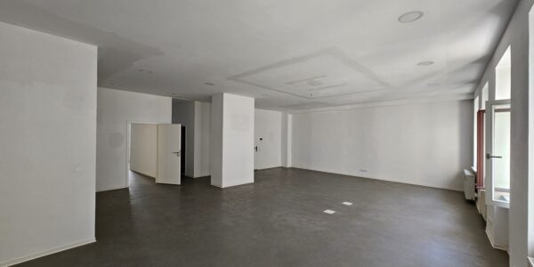 Die repräsentative Gewerbefläche befindet sich im 2. Obergeschoss des Gebäudes und ist über einen Fahrstuhl auf halber Treppe erreichbar.Wie sie auf den Bildern erkennen können, besteht die Gewerbefläche aktuell aus einem großen hellen Arbeitsraum, einem geräumigen Personal- oder Beratungsraum, einem WC mit Fenster, einer separaten kleinen Teeküche und einem Abstell-/Technikraum.